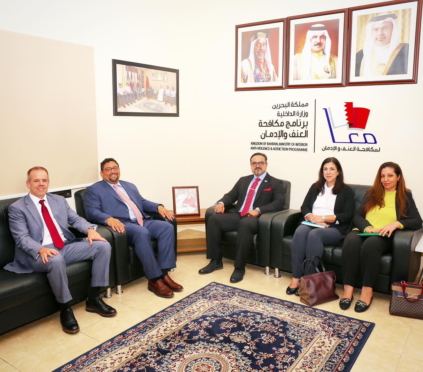 بحث السيد علي أحمد أميني مدير إدارة الوقاية من الجريمة مدير برنامج معاً، مع السيد ديفيد براونستاين نائب سفير الولايات المتحدة الأمريكية لدى مملكة البحرين سبل تطوير التعاون في تنفيذ برنامج مكافحة العنف والإدمان "معاً.
